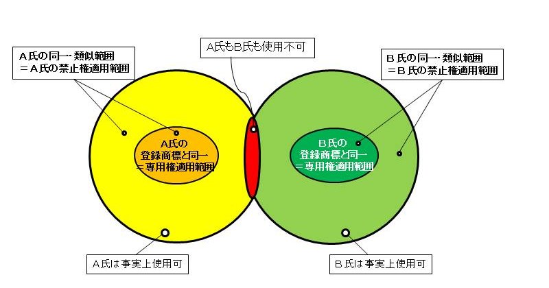 黄 :A氏の類似範囲。他人の使用を禁止することができます。